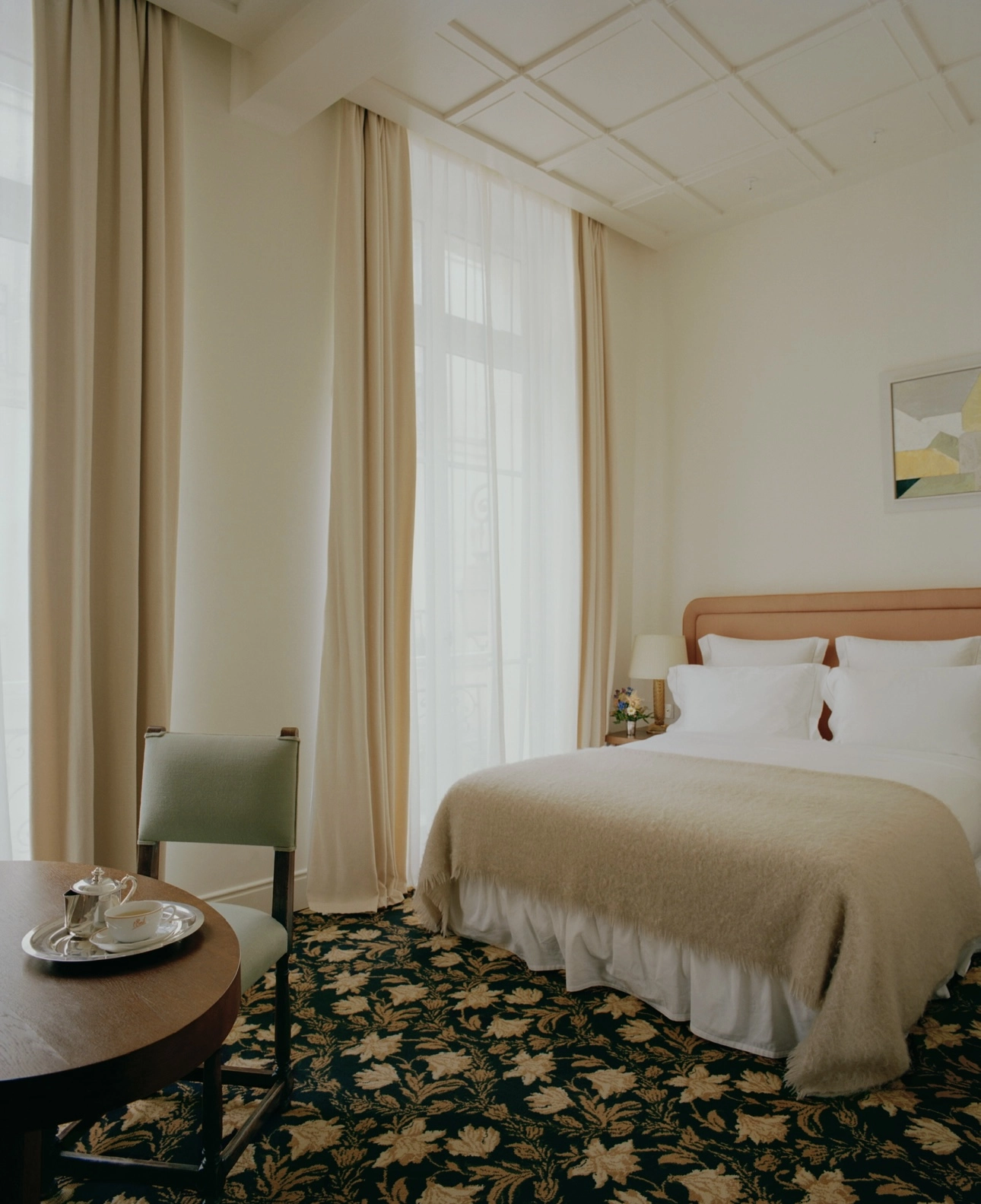 Au diapason de l’esprit des lieux, ces chambres se jouent des volumes et se parent de tissus au tombé délicat, d’œuvres d’art et de mobilier sur-mesure, pour vous garantir un confort inimitable en plein cœur de Paris.